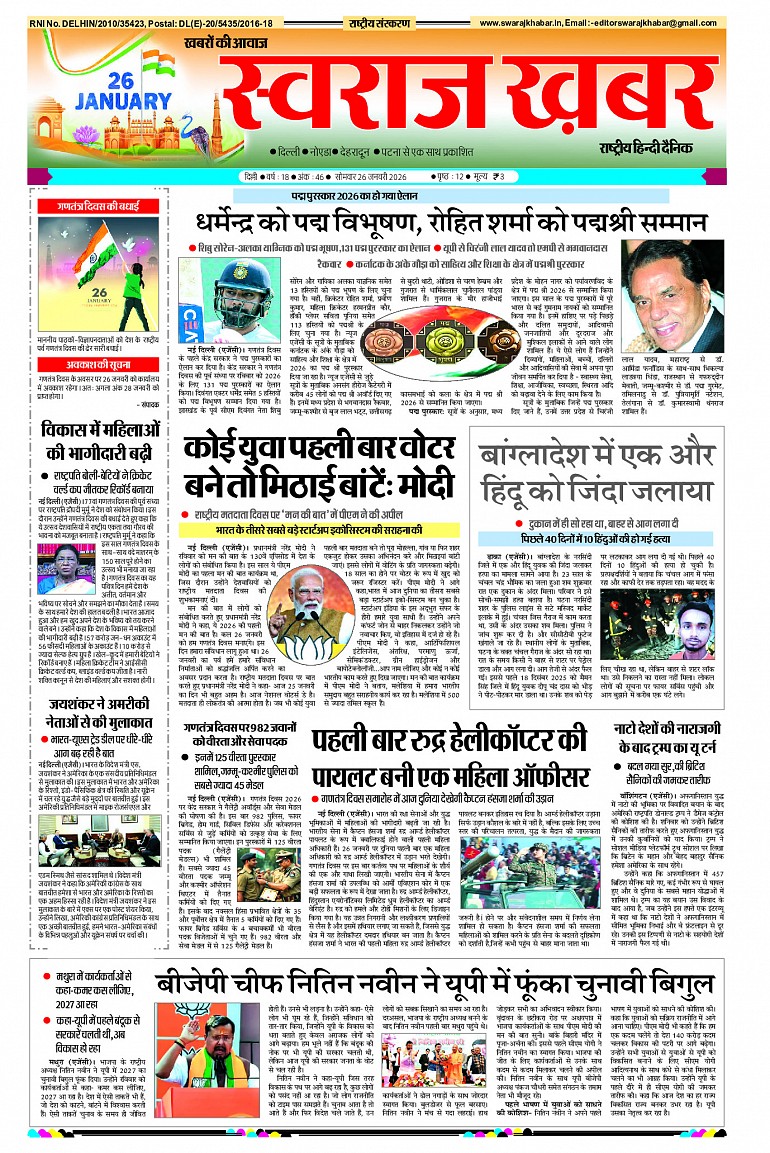 Swaraj Khabar January 26, 2026 National Hindi daily Epaper Swaraj Khabar Home Page 1Page 2Page 3Page 4Page 5Page 6Page 7Page 8Page 9Page 10Page 11Page 12 × Swaraj Khabar Download EPaper PDF Full PDF << First << 1 >> Last >>