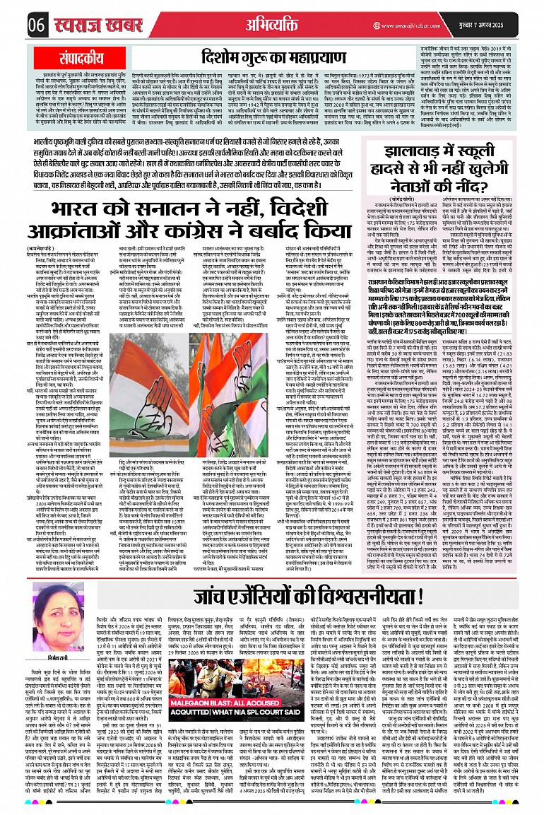 Swaraj Khabar Page: 6 August 07, 2025 National Hindi daily Epaper Swaraj Khabar Home Page 1Page 2Page 3Page 4Page 5Page 6Page 7Page 8Page 9Page 10Page 11Page 12 × Swaraj Khabar Download EPaper PDF Full PDF << First << 6 >> Last >>